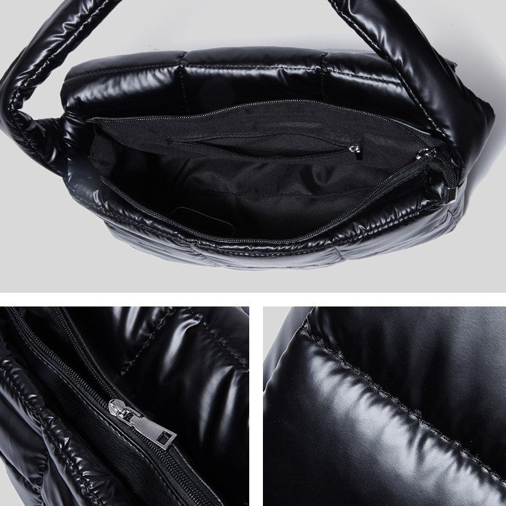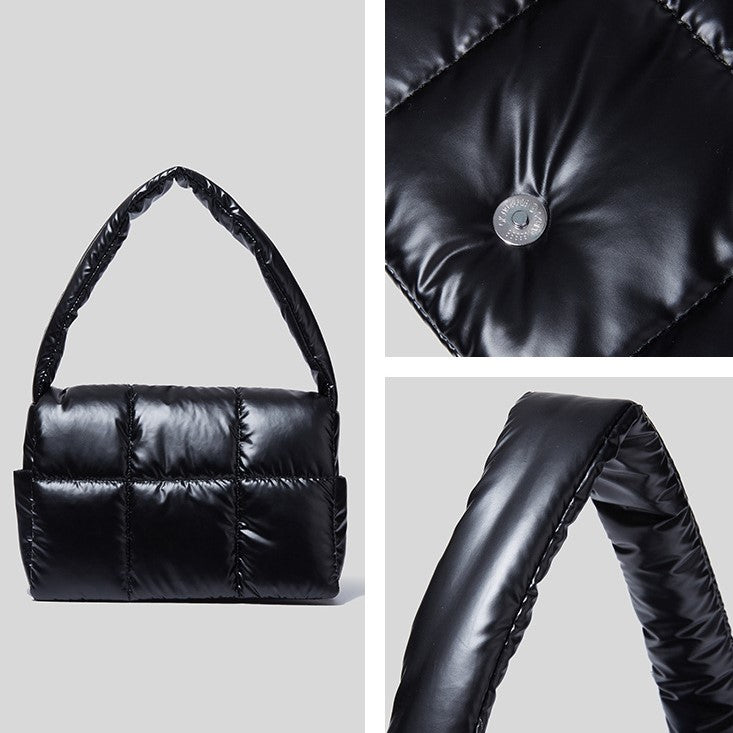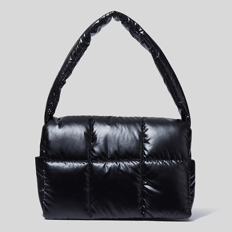 Quilted puffer shoulder bag.