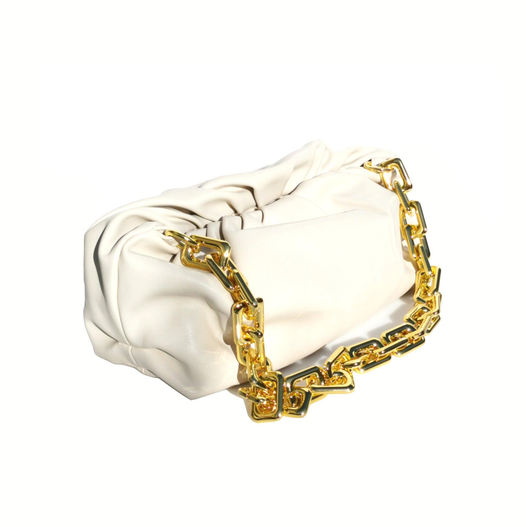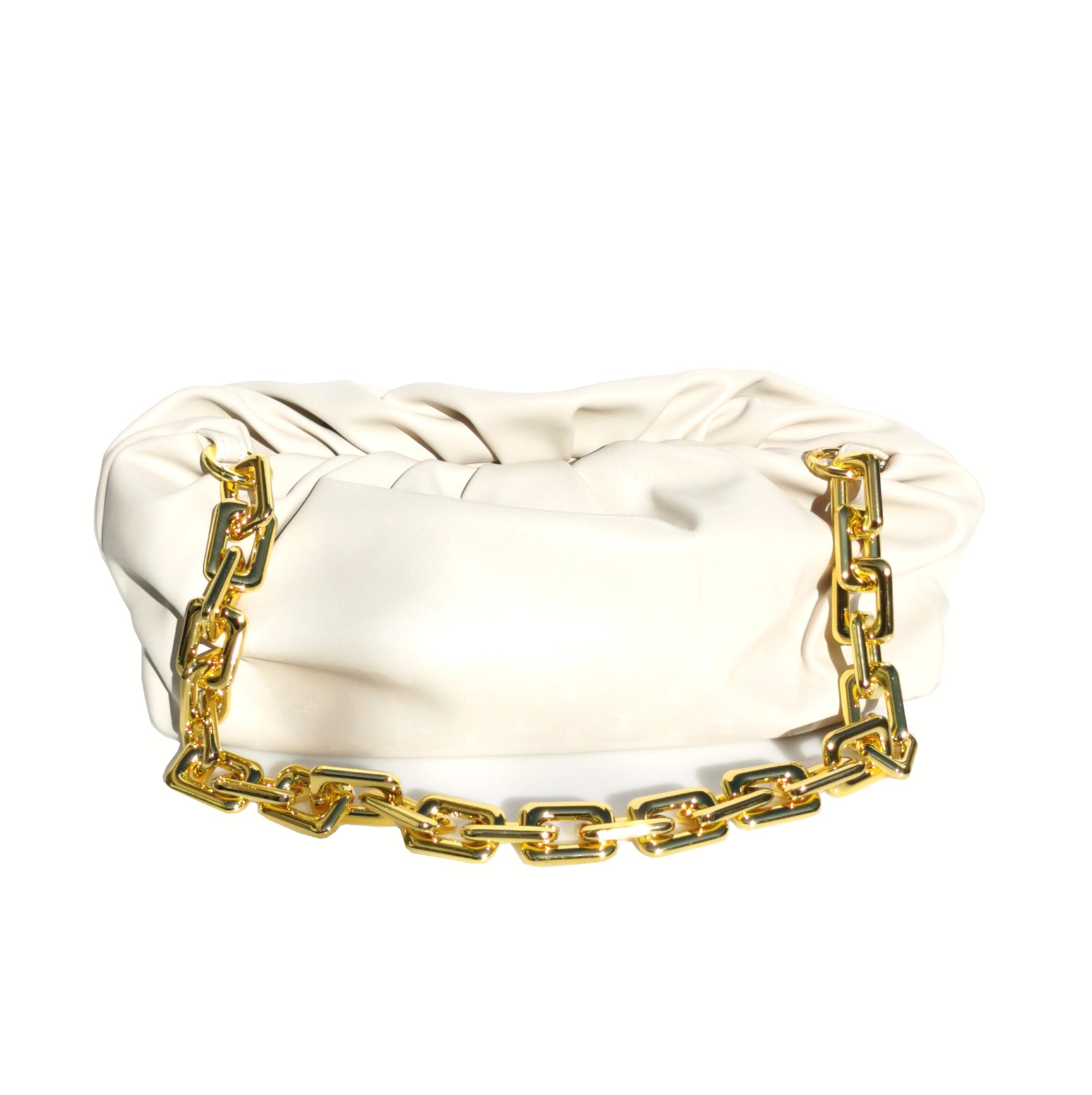 Pouch bag with gold metallic chain